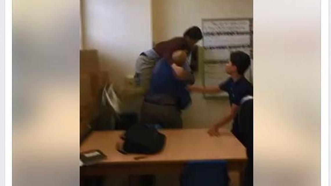 Several students are heard yelling in the background of the video and at least one student can be seen attempting to intervene.