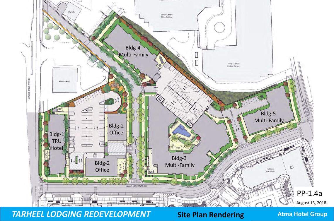 In 20 years, “there might be something happening to the Europa Center ... and then they’ll have the excuse to say we want to exceed our block length, because there’s no connection to Tarheel Lodging,” he said. “So then, we perpetuate this situation of having excessive block lengths, and essentially preventing increased walkability in that whole district, at that corner.”