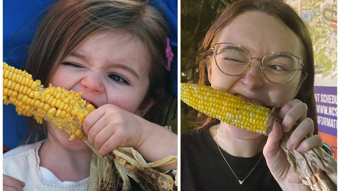 Roberts, now 23, was at the NC State Fair this week with her boyfriend, Parker Klinck, and got corn from her favorite stand. They recreated the 2001 photo for us.