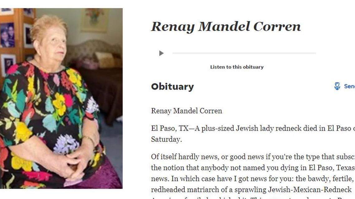 Renay Mandel Corren’s sprawling and irreverent life is memorialized in Wednesday’s Fayetteville Observer.