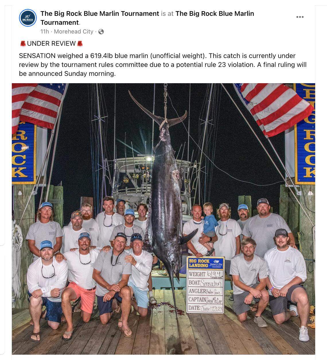“The Big Rock Blue Marlin Tournament follows IGFA (International Game Fish Association) rules regarding mutilated fish as outlined in Rule #23 in the Big Rock Official Rules,” Big Rock said in a statement. “IGFA rules state that the following situation will disqualify a fish: ‘Mutilation to the fish, prior to landing or boating the catch, caused by sharks, other fish, mammals, or propellers that remove or penetrate the flesh.’”