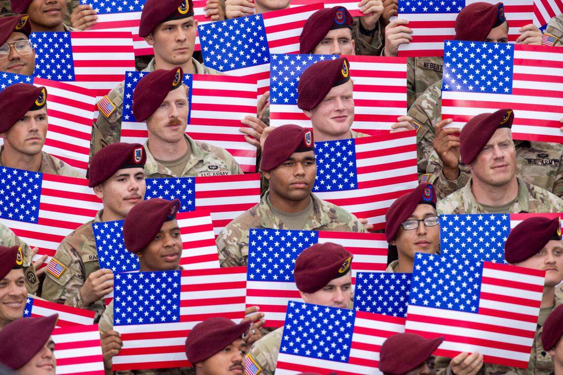 Soldiers cheer as President Donald Trump leaves the stage Tuesday, June 10, 2025, at Fort Bragg, after speaking before a crowd of soldiers and civilian supporters to mark the U.S. Army’s 250th anniversary. Defense Secretary Pete Hegseth and Army Secretary Dan Driscoll, a North Carolina native and University of North Carolina at Chapel Hill alumnus, also attended. Travis Long tlong@newsobserver.com
