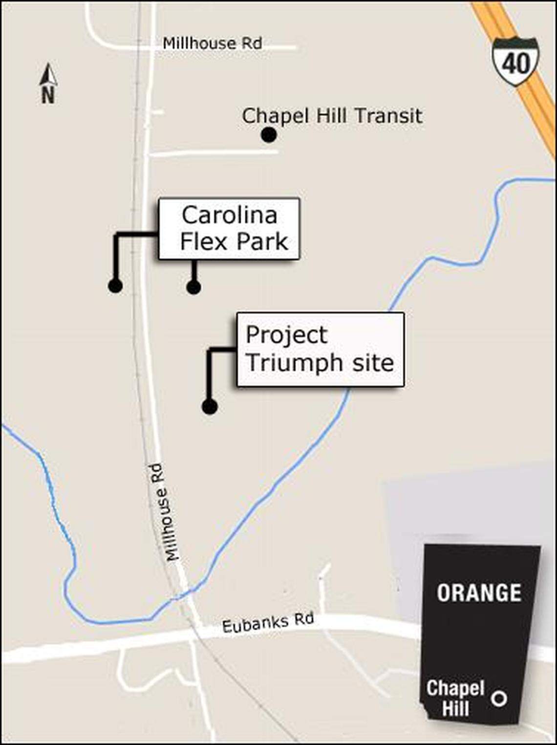 Foundry Commercial represents the adjacent Carolina Innovation Park (formerly Carolina Flex Park), which the Town Council rezoned last year. The business park and Project Triumph are the first two projects for a 60-acre light-industrial district that the town created to generate more businesses, tax revenues and jobs.