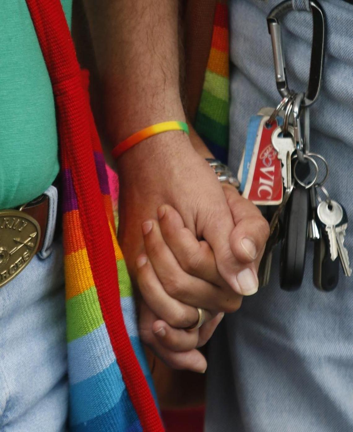 “These students have said, ‘We don’t have safe spaces,’” Perkins said, wearing a Stonewall T-shirt. “We want kids to be kids. There should be policies in place that allow for that.”