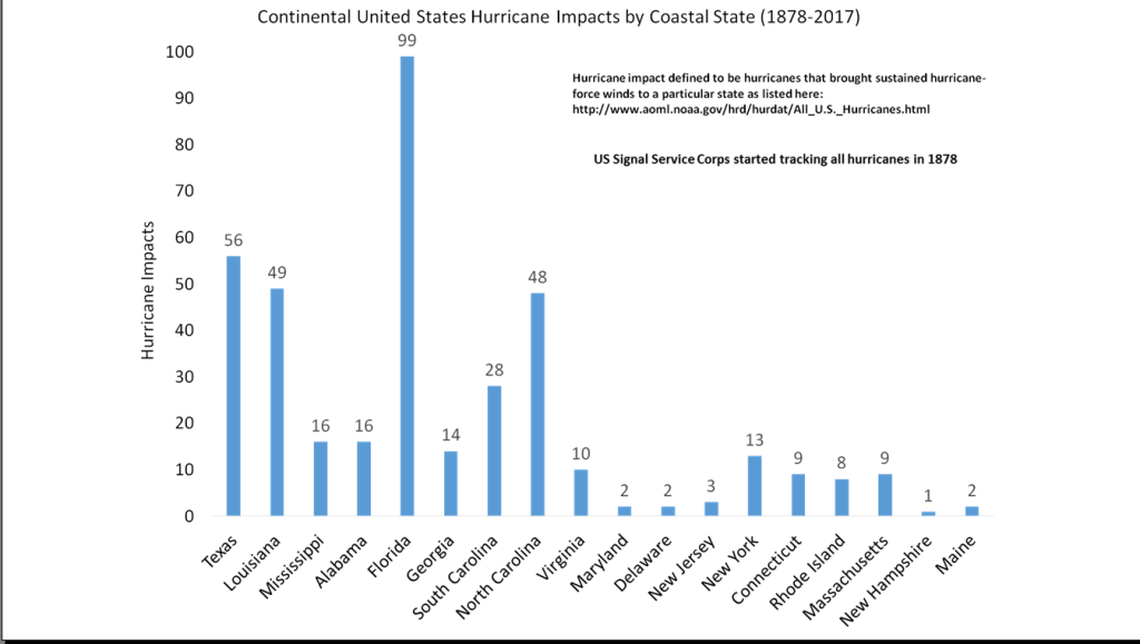 If Colorado State’s forecast holds true, another busy season could draw a collective moan from South Florida and the Caribbean after a punishing 2017 season. The Atlantic churned up a record 10 hurricanes in a row last year, including Harvey, Irma and Maria, for a total of 17 named storms and six major hurricanes. On average, the Atlantic produces12 named storms and just three major hurricanes.