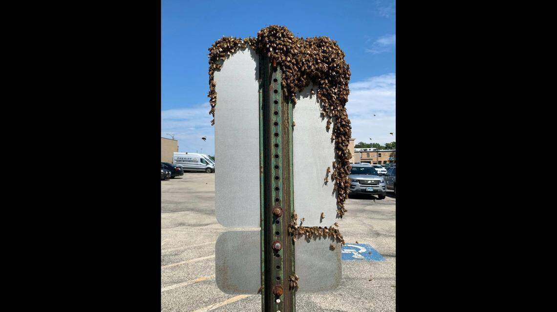 This story was originally published July 28, 2020 at 1:14 PM with the headline "Swarm of bees lands at Illinois sheriff’s office. These photos might make you squirm."