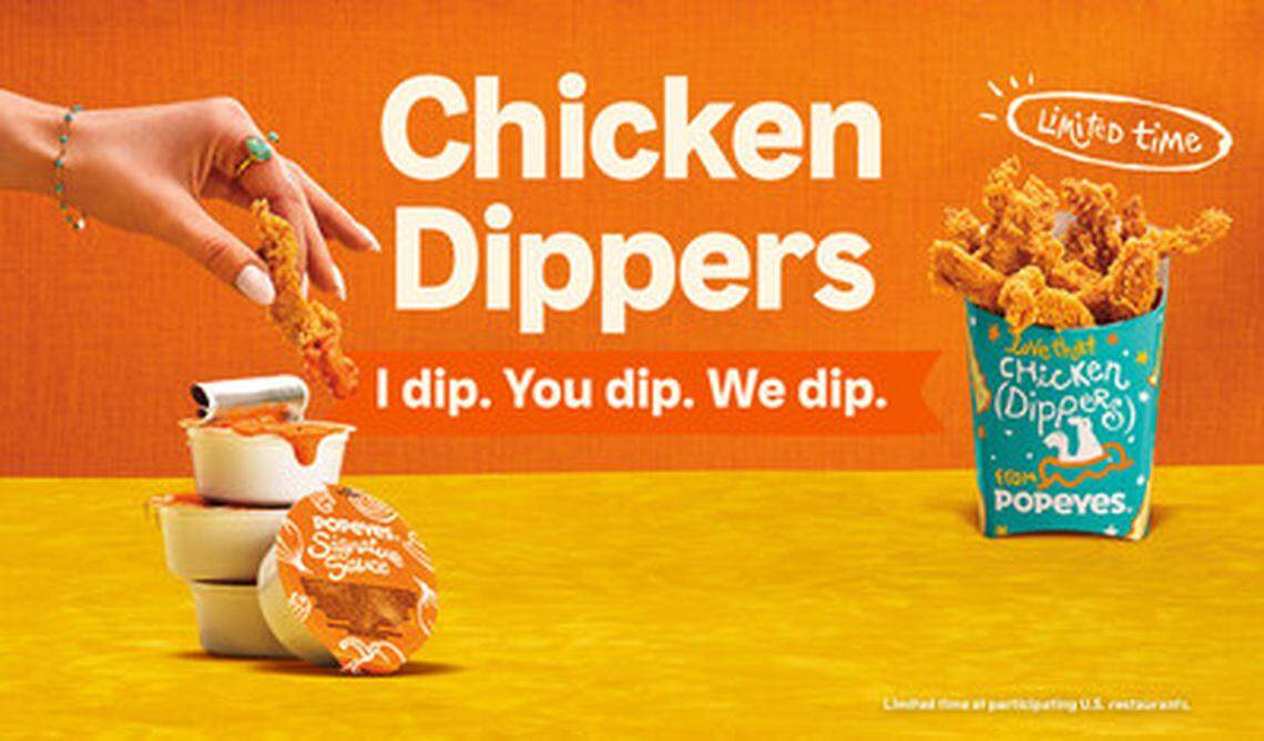 Customers can dunk the dippers — thin strips of white meat chicken battered in Popeyes’ signature spice blend — in a sauce that blends “the bold flavors of the Louisiana ‘holy trinity;’ bell pepper, celery, and onion,” Popeyes said in a news release.