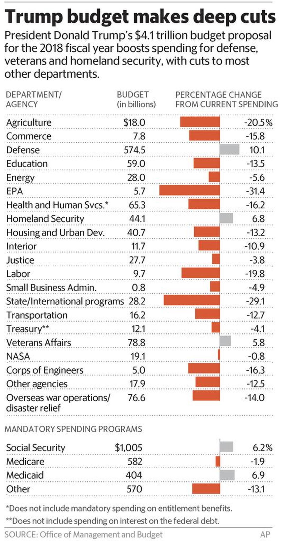 President Donald Trump’s fiscal 2018 budget, unveiled Tuesday, has $190 billion in cuts in the Supplemental Nutrition Assistance Program, which serves more than 40 million Americans.