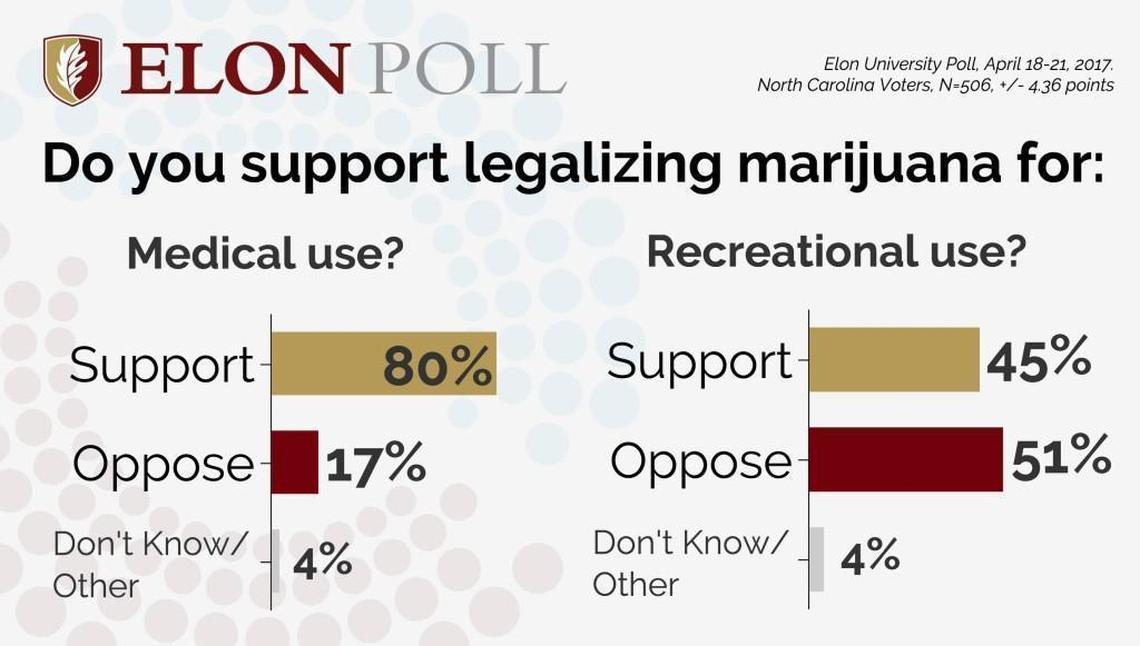 North Carolinians overwhelmingly want to see medical marijuana legalized, according to a new Elon University poll.
