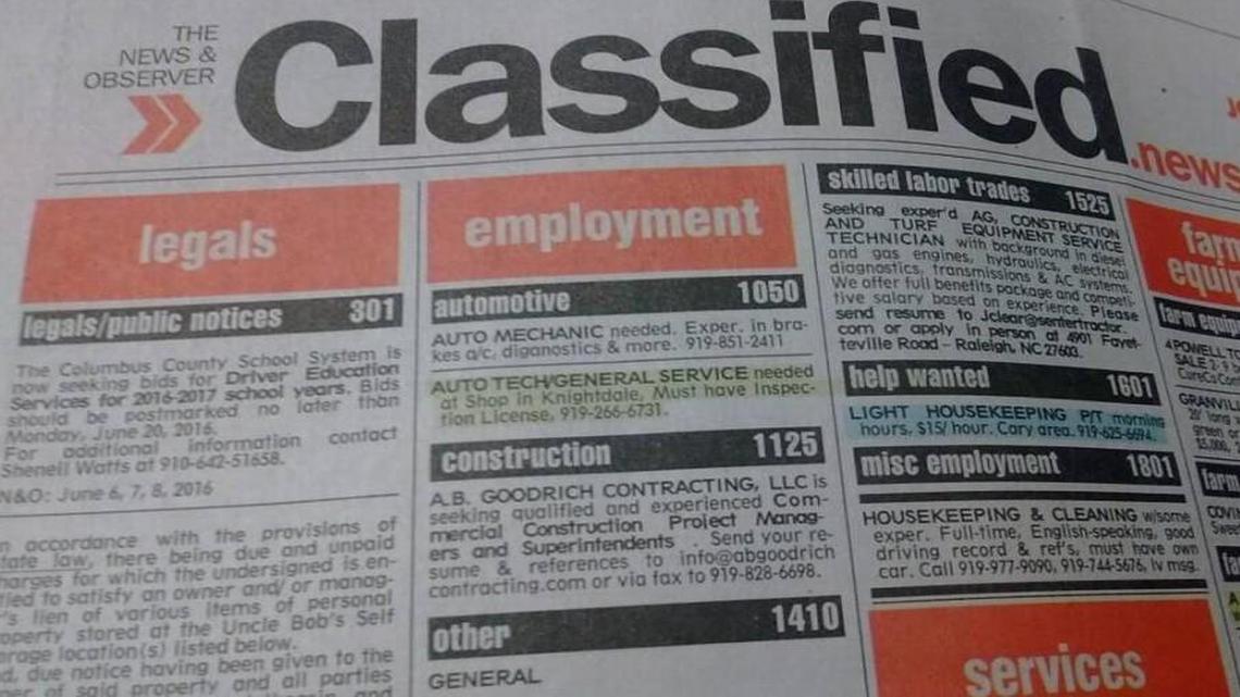 The new requirements appear to allow local governments to use a statewide newspaper, such as the North State Journal, instead of local newspapers, by eliminating a requirement that the newspaper have its postal permit in the county where the local government is located.