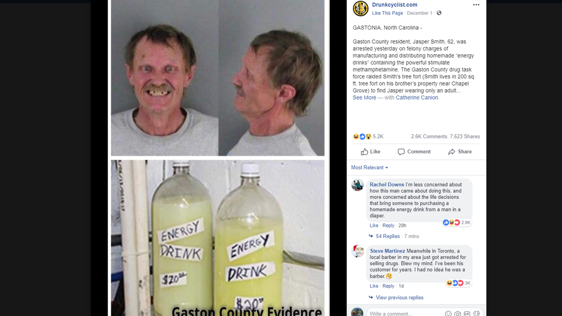 This story was originally published December 3, 2018 at 1:06 PM with the headline "Was NC man really arrested for making an energy drink of meth, lemonade and gas?."