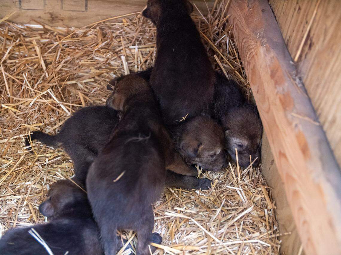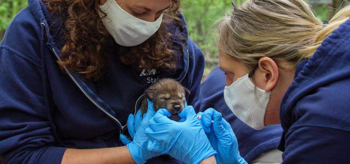 Meet Oak, Cedar, Sage, Lily and Aster — endangered red wolf pups just born at NC Zoo