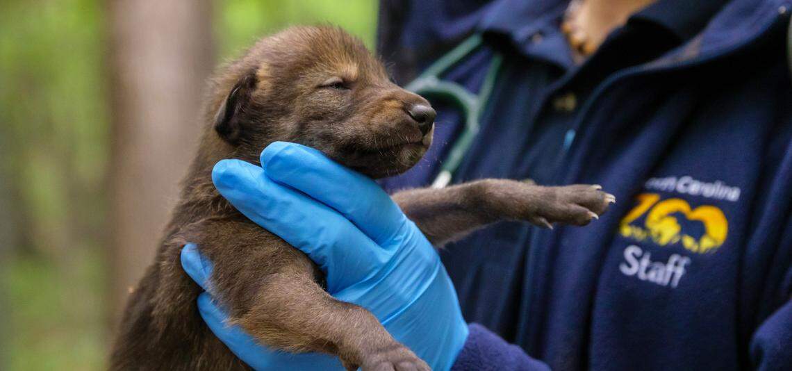 The North Carolina Zoo in Asheboro announced the birth of five American red wolf puppies, three male and two female, on Friday. The pups, born April 21, are named after flora found in North Carolina — their native state.