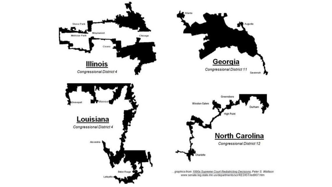 The term “gerrymander” arose from an 1812 Massachusetts state Senate district so convoluted for partisan advantage that a cartoonist depicted it as a salamander. Since the mapmaking was done under the control of Gov. Elbridge Gerry, the new political creature was labeled a gerrymander.