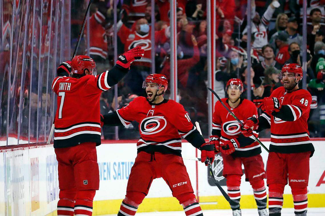Seth Jarvis drew back into the lineup and the rookie forward scored twice. While he brings speed and skill to the lineup, the Canes would miss the intangibles that Martinook, an alternate captain, provides if he’s sidelined for an extended period with a lower-body injury.